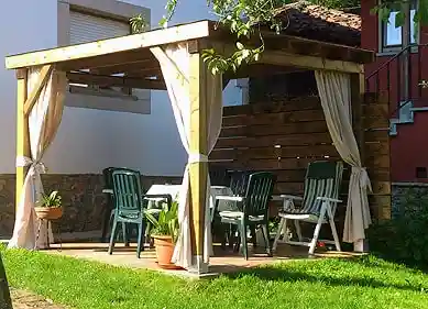 Algunos de los apartamentos disponen de un porche cenador cubierto en la entrada y balcón; y el balcón del dormitorio matrimonial ofrece vistas a los Picos de Europa.
