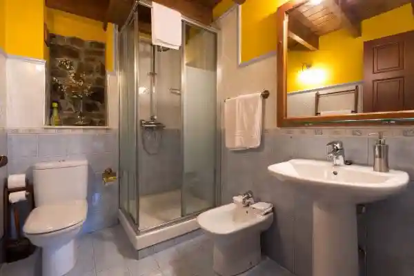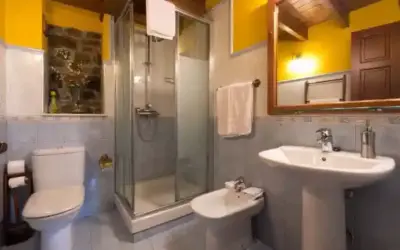 El alojamiento esta distribuído en una nueva construcción de tres plantas, una para cada apartamento que son totalmente independientes y tienen una capacidad de 4, 6 y 8 plazas, que debido a la orografía de la zona, está ubicado en una zona con mucha diferencia de niveles en el terreno, tanto el apartamento de la planta superior, como el de la planta inferior, tienen acceso rodado.