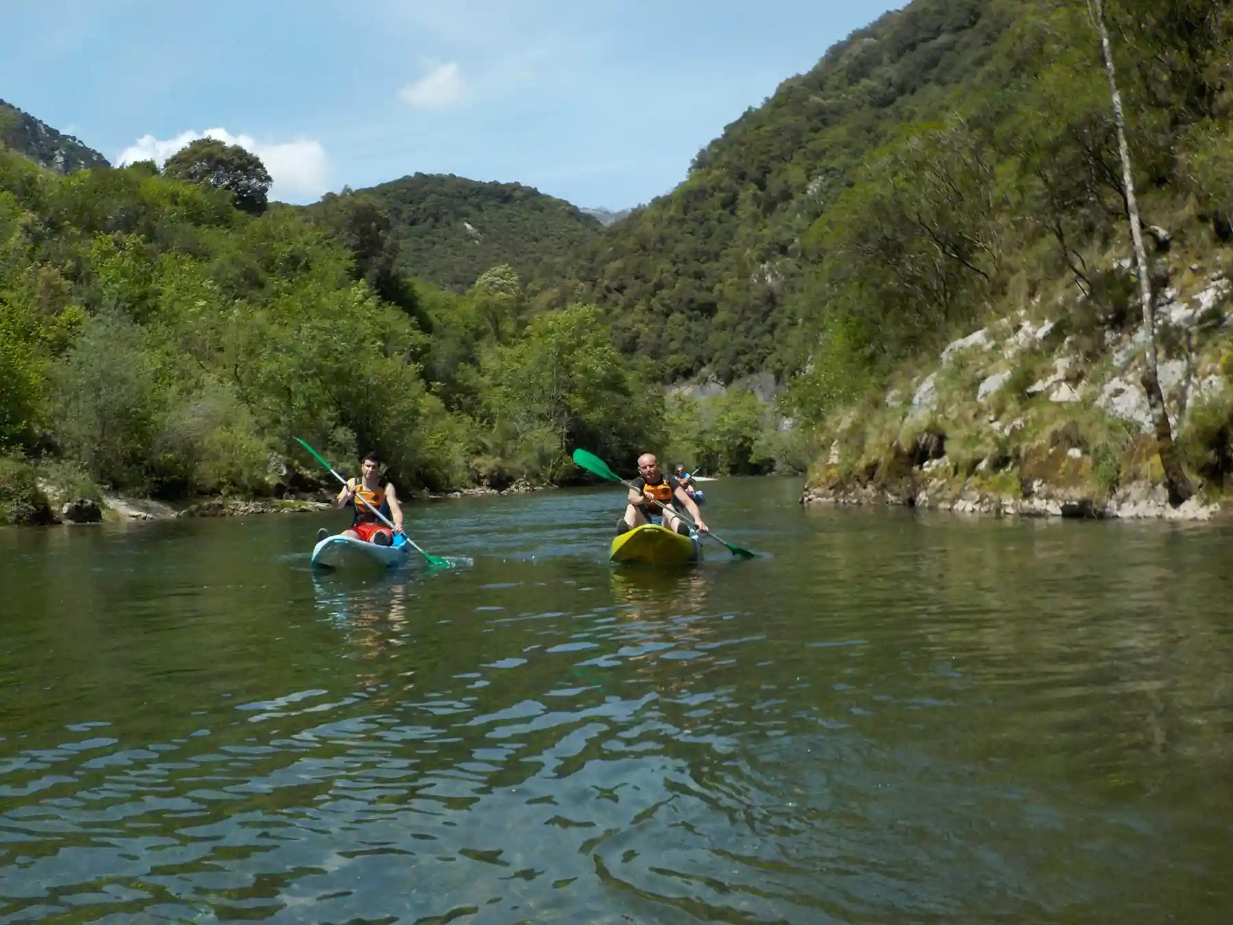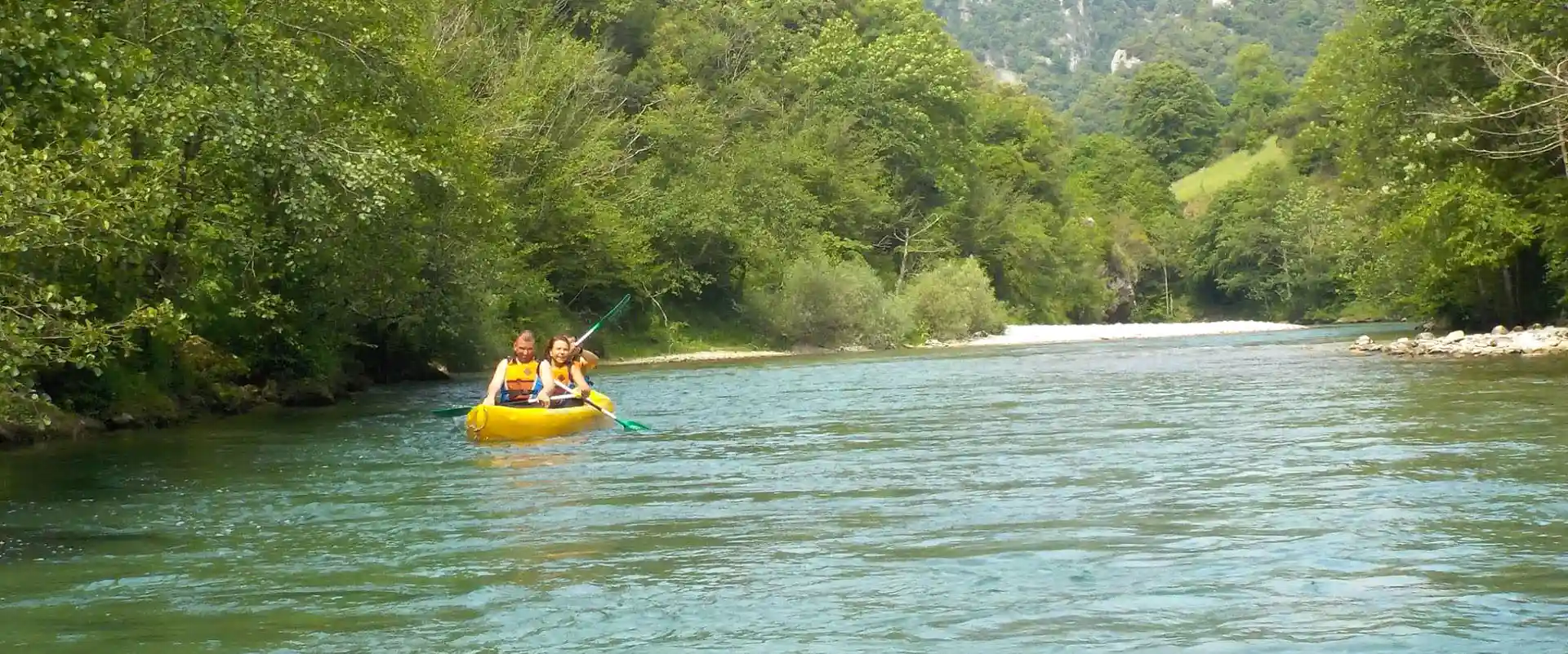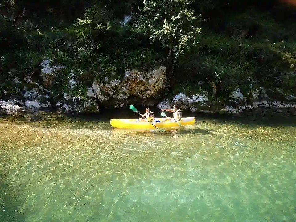 Canoe Aventura Trophy estamos a pie del rio Deva lugar en el que realizamos la actividad del Descenso en Canoa, donde habeis dejado el coche y a donde volveremos al terminar la actividad, la actividad se realiza en un tramo con bastante desnivel pero con poca fuerza de agua, para hacerlo de la forma mas segura y que sea ideal para toda la familia, descubreréis un rió de aguas cristalinas, dentro del incomparable marco que son los Picos de Europa.