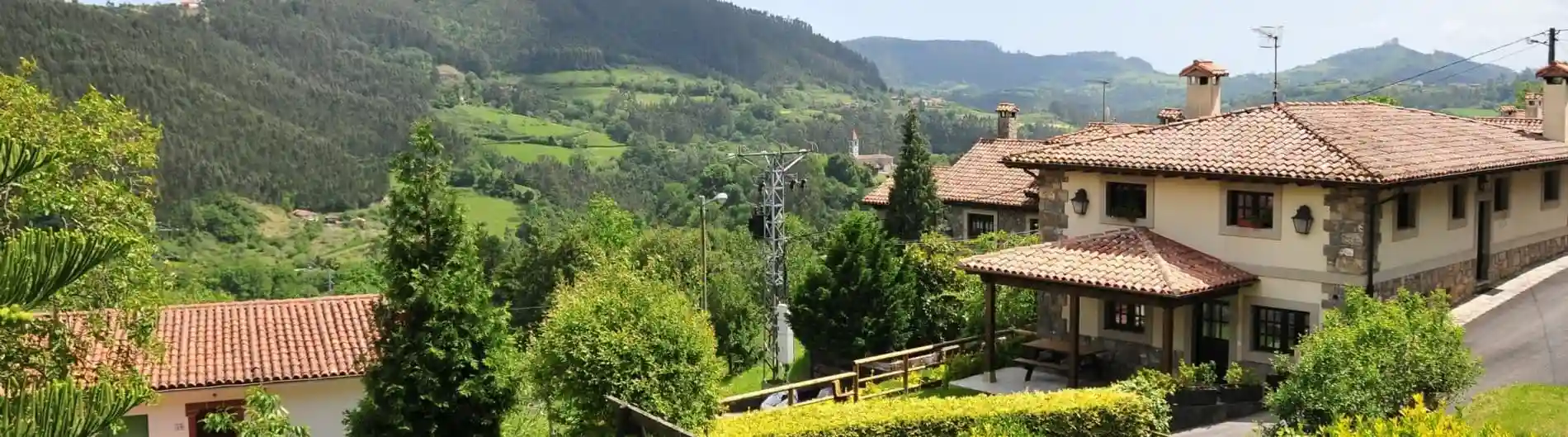 Las casas se localizan en la ladera de una montaña que mira al precioso valle de Miravalles y a la Reserva Natural del Sueve. El entorno es de una belleza que cautiva desde el primer momento. La aldea, muy tranquila pues no tiene más de una docena de casas, está rodeada de prados verdes, pumaradas, bosques y senderos.